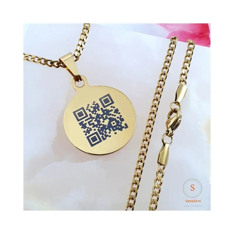 Wij graveren jouw QR code in de beste kwaliteit in deze mooie hanger. Jij hoeft alleen je tekst of naam voor de QR code in te vullen en wij zetten dit om in een QR code.