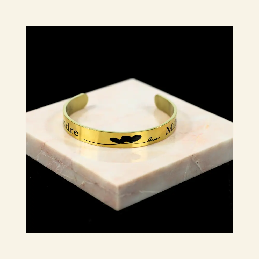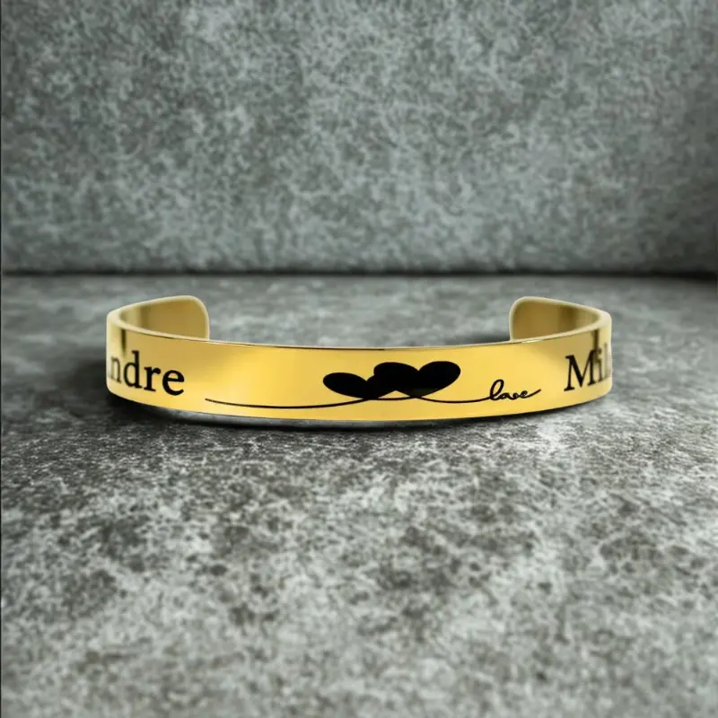 Een gepersonaliseerde armband vrouw is een krachtig statemen, omdat het combineert stijl met betekenis. Of je nu kiest voor bijvoorbeeld een moderne slavenarmband, een elegant goudkleurig sieraad, of een robuuste titanium armband, met een persoonlijke gravure geef je jouw sieradencollectie of cadeau een diepere dimensie.