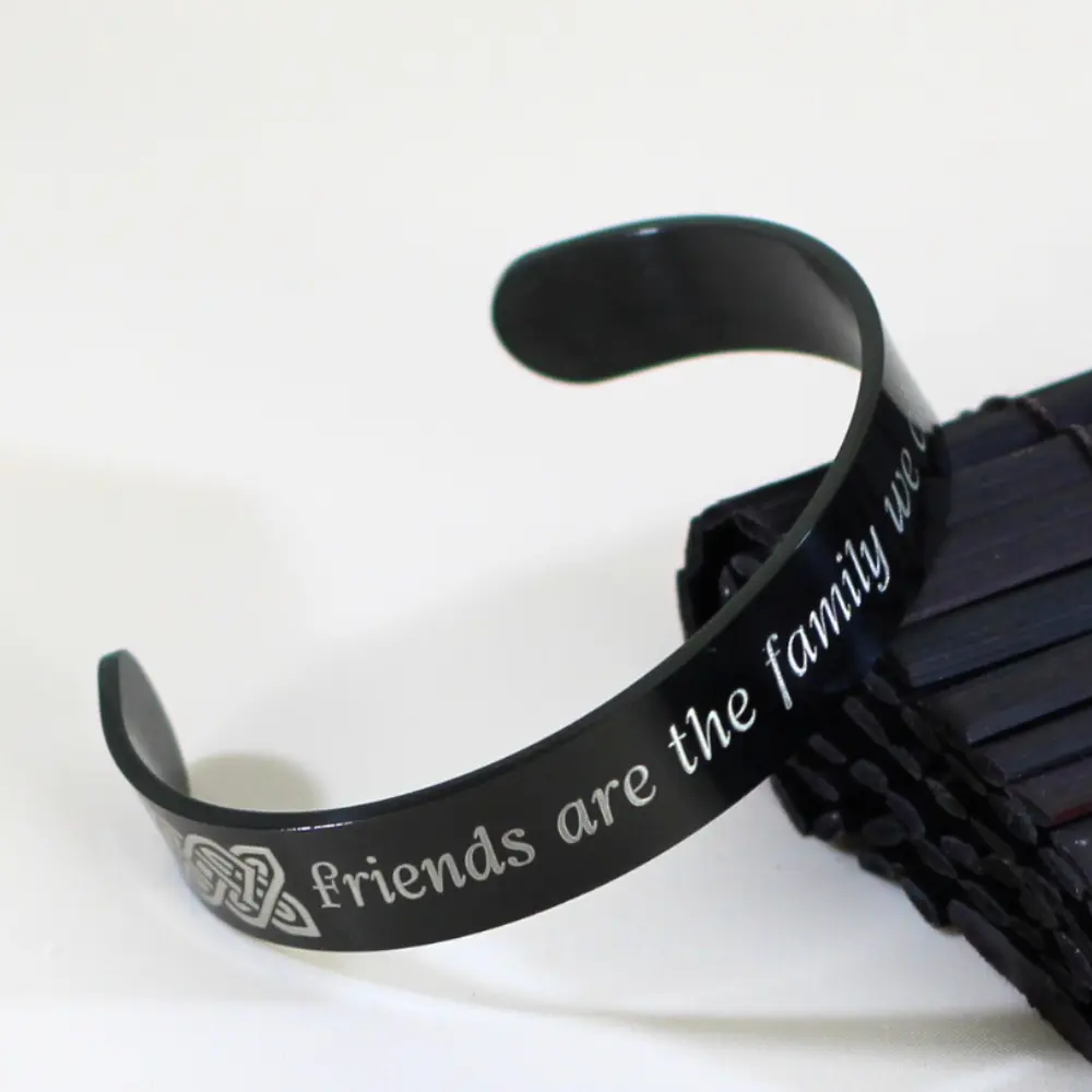 Zwart is een klassieke en tijdloze kleur die perfect past bij mannen armband met tekst. Het straalt kracht, mysterie en elegantie uit, en is bovendien makkelijk te combineren met elke outfit – van een strakke zwarte jeans tot een net pak.